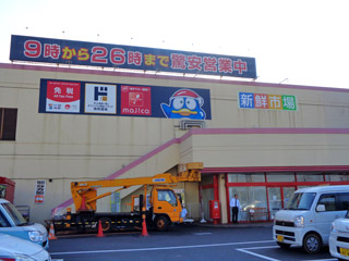 ドン・キホーテ北鴻巣店様の壁面看板の設置作業を行いました。