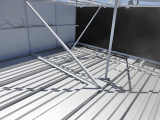 高所での作業の為、安全面に配慮しつつ高所作業車を使用して施工を致しました。