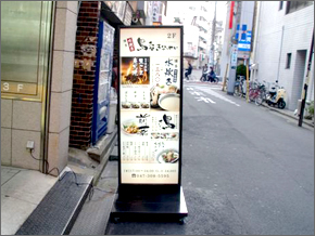 店舗の上部に設置することにより、店舗の位置を明確に伝え、内容を大きくアピー ル。